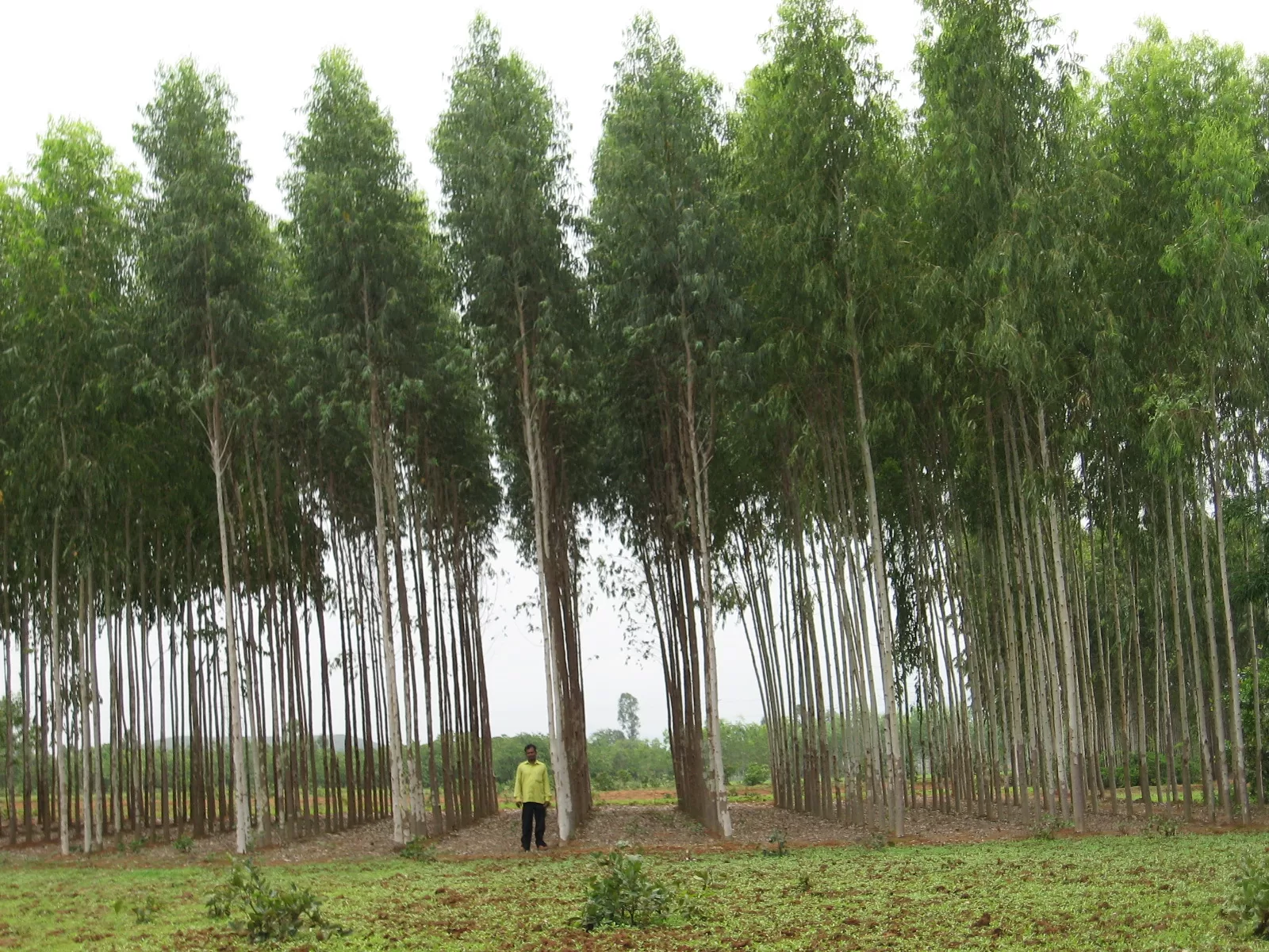 Our forest plantations primarily consist of commercial trees, with nearly 90% being Eucalyptus. This species is ideal for degraded, rain-fed lands and increases farm income. Eucalyptus does not require fencing, as cattle avoid young plants. The trees are mostly disease- and insect-resistant, which minimizes pesticide use and benefits both soil and the environment.